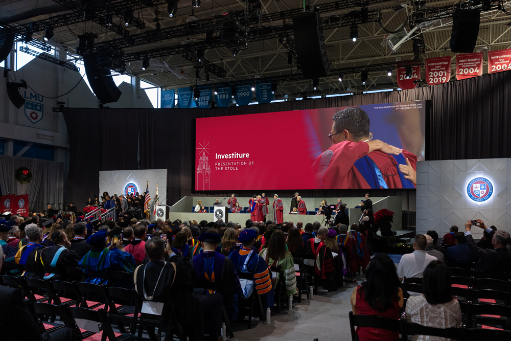 onoring Tradition, Building What’s Next The installation of Loyola Marymount University’s 17th president marked a pivotal moment in the life of the institution. To honor that milestone, LMU hosted two signature events, an evening gala and a formal inauguration ceremony, both held inside Gersten Pavilion and delivered less than 24 hours apart.
